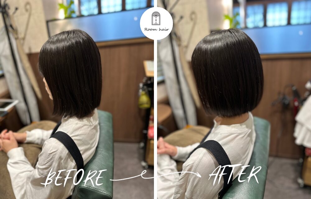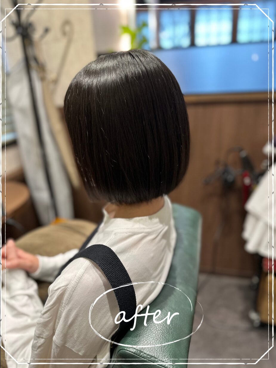 今回のお客様のように「毛先がはねて扱いにくい髪」も、ボブスタイルに整えることで毎日のお手入れがぐっとラクになります。