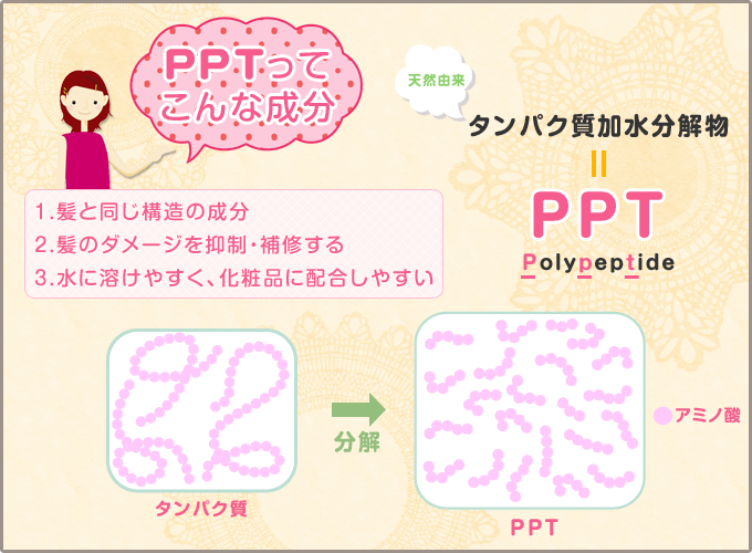 PPTとは、ポリペプチドの略で、タンパク質を細かく分解した成分。