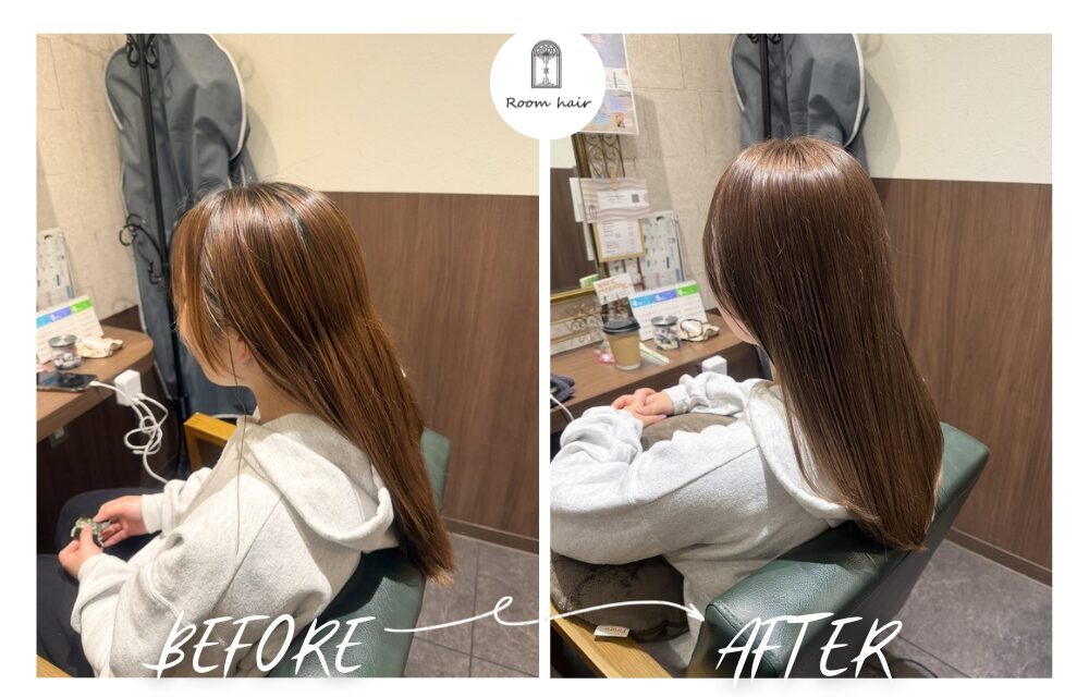 仕上がりは、明るさを残したまま少しくすんだ柔らかベージュ。