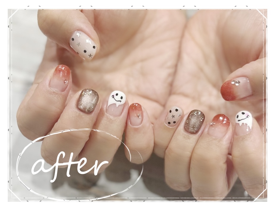 今回はハロウィンネイルにしたい!50代の女性事例です。