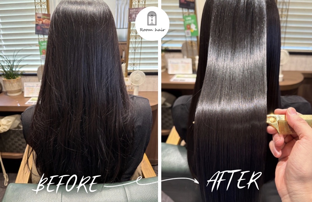クセが強い方には縮毛矯正が必要な場合もありますが、髪質改善はあくまで「ダメージや乾燥による乱れ」を整える施術です。
