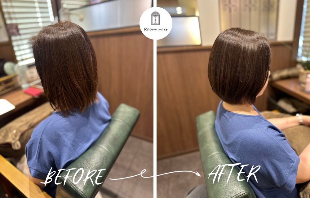 毛先のまとまり感と丸みのあるシルエットで、上品で清潔感のある印象になりました。