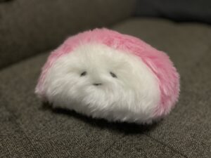 この子はお気に入りの「かまぼこのぬいぐるみ」です笑