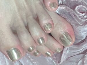 上品さと存在感のあるシャンパンゴールドのミラーネイル