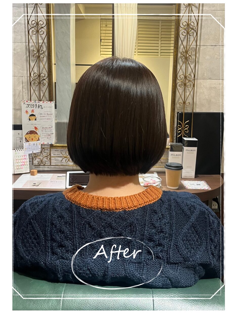 長さが伸びてかっこよさのあるボブから可愛い印象のシルエットに変えていきます