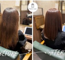 髪のパサつきで裾が広がるのを気にされていたのでリニューイングのトリートメントでパサつきを軽減させていただいたきました。全体的にツヤが出てキレイな髪になりました♪