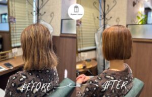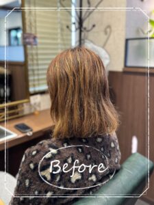 これまで年二回のペースで3回ほど「プレミアム酸性ストレート」をさせていただいており、白髪ぼかしのためブリーチを使ったハイライトも定期的に施術させていただいております^^