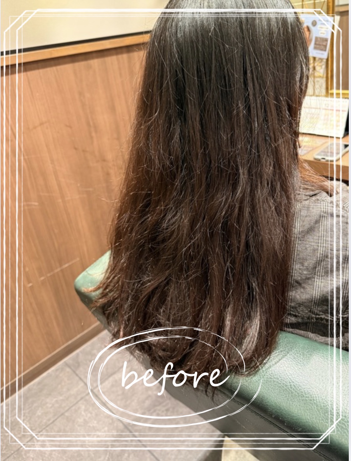 「縮毛矯正はしたくないけど、もっとまとまりのある髪にしたい」とのことでご来店されました。