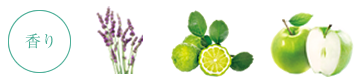 ラベンダーにベルガモットやグリーンアップルなどのフレッシュフルーツをブレンドしたリフレッシングな香り。