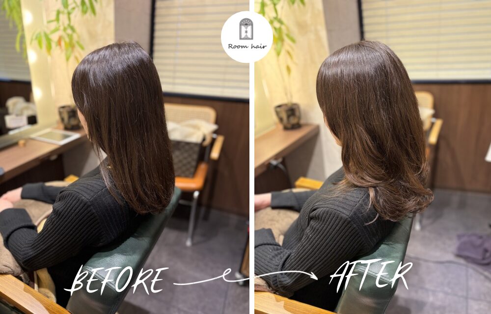 パサつきが気になるセミロングを、まとまりのあるミディアムレイヤーボブへ>>