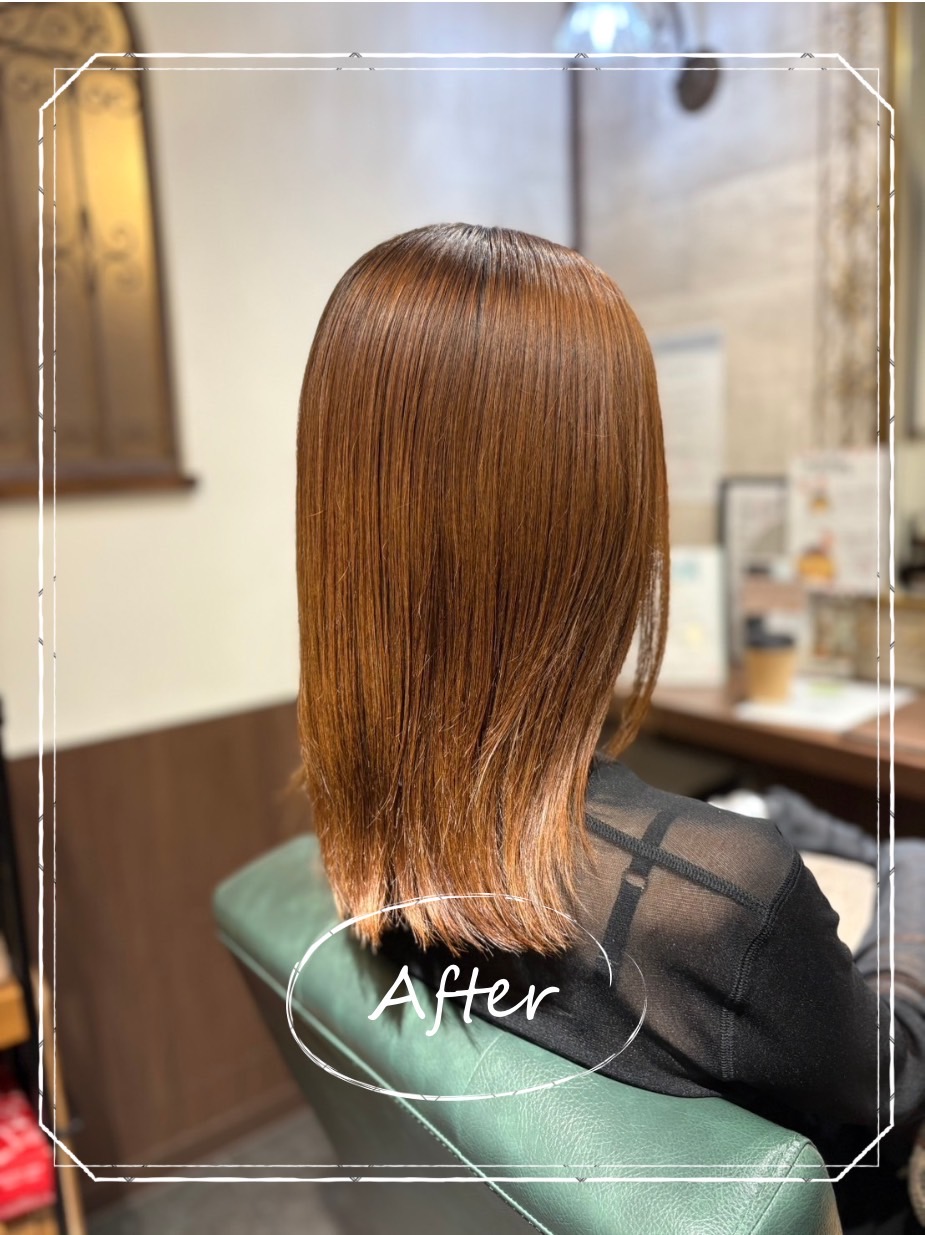という事でご相談の結果、今回はお悩みのある右側部分だけではなく艶出しも含め全体的に酸性ストレートをご体験頂きました!