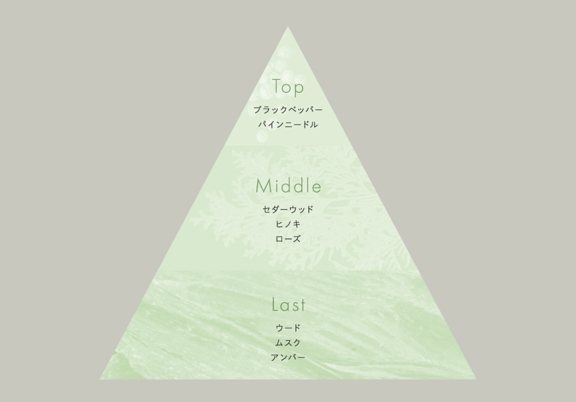 すべてのプロダクト共通で、森の空気と温もりを感じるウッディな香り♪