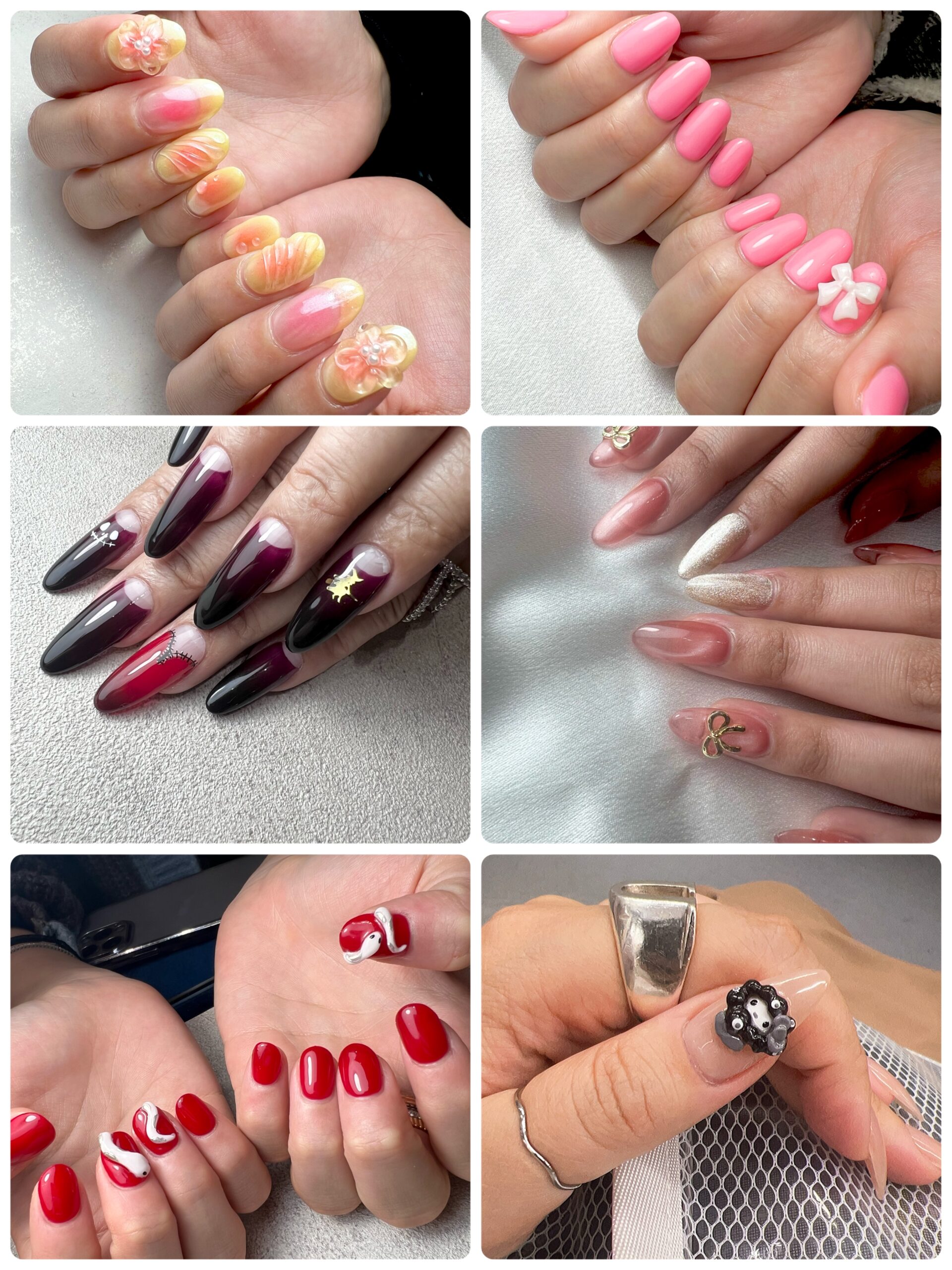 私が好きなデザインはシンプルデザインから少しポップなデザイン、幾何学的なデザインも好きです。ですがお客様のリクエストでしたらどれでも対応出来るよう日々学びの毎日で、出来るだけリクエストに答えれるよう推しネイルやイベントに合わせてのネイルも対応しております。