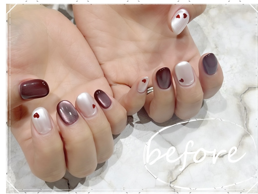前回はシンプルめがご希望でボルドーマグ×ホワイトパールカラーに!!